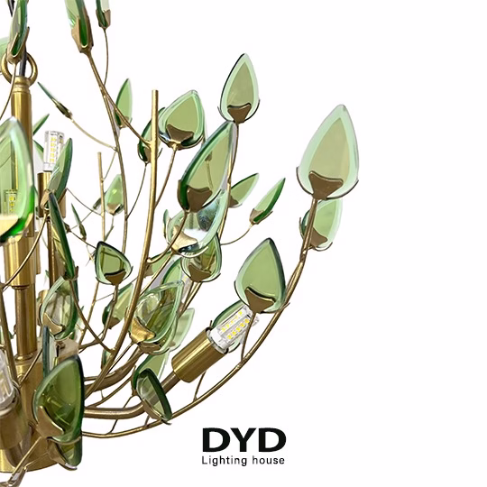 طراحی الهام گرفته از طبیعت: شاخه های لوستر شبیه به شاخه های درختان با برگ های کریستالی، جلوه ای طبیعی و دلنشین به محیط می بخشند.