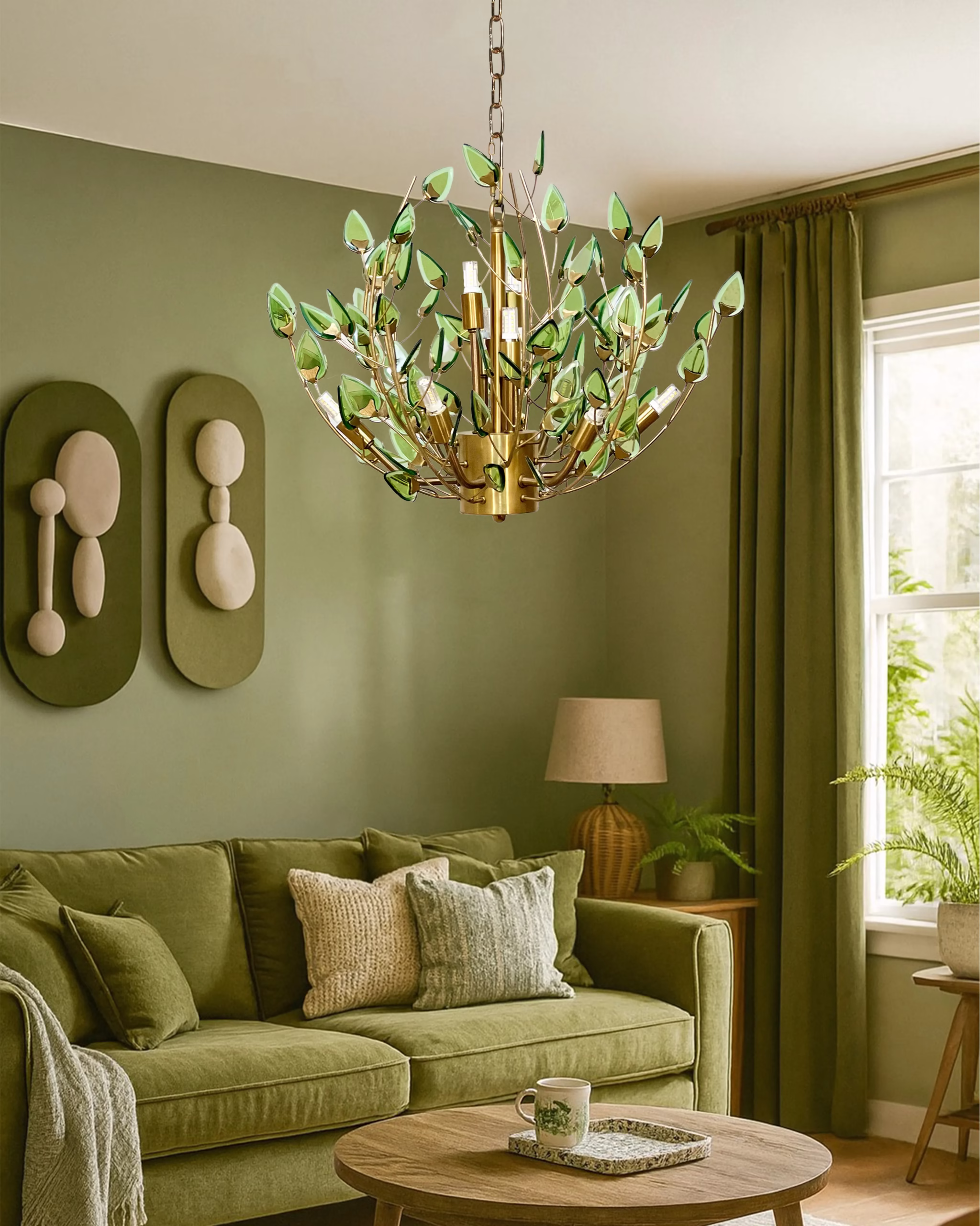 طراحی الهام گرفته از طبیعت: شاخه های لوستر شبیه به شاخه های درختان با برگ های کریستالی، جلوه ای طبیعی و دلنشین به محیط می بخشند.