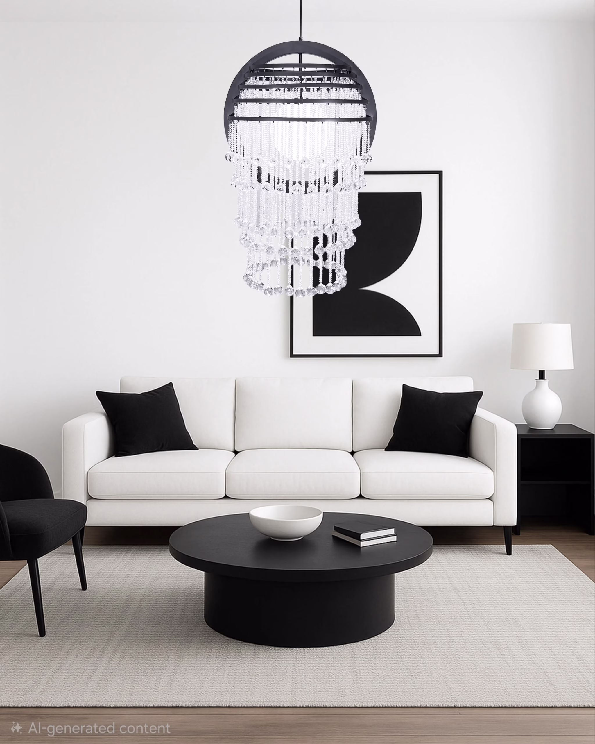 دکور مدرن: ترکیب رنگ مشکی استاتیک با کریستالهای درخشان، آن را به یک قطعهٔ هنری تبدیل میکند که در کنار دکور مدرن نیز جذاب خواهد بود.