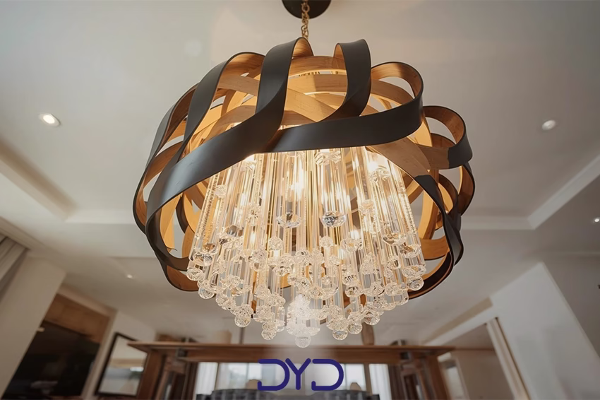 لوستر ترکیبی (چوب و فلز، شیشه و کریستال)